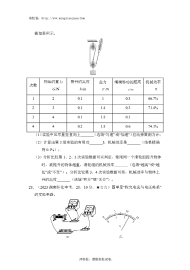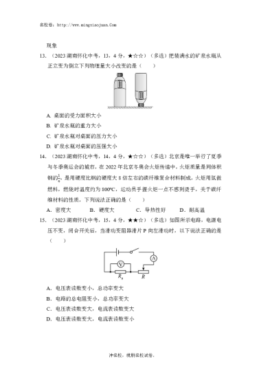 转载请注明出处: 名校卷 » 怀化市2023年初中学业水平考试试卷物理-原题