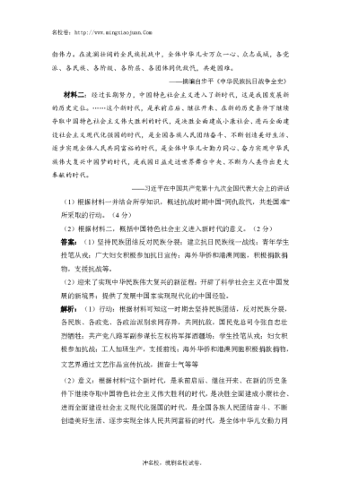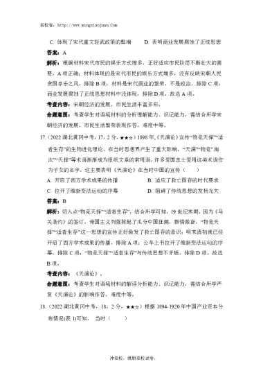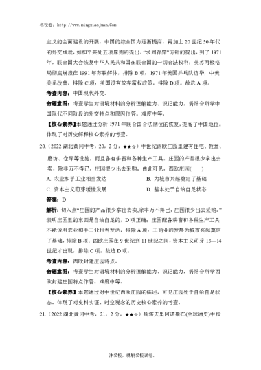 转载请注明出处: 名校卷 » 黄冈市2022年初中学业水平考试历史试卷-解析
