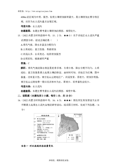 转载请注明出处: 名校卷 » 2022年呼和浩特市初二年级结业考试试卷地理部分-解析