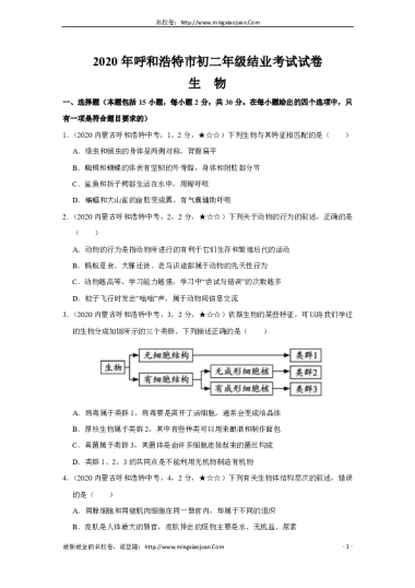 转载请注明出处: 名校卷 » 2020年呼和浩特市初二年级结业考试试卷生物