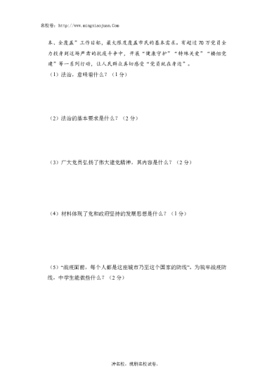 转载请注明出处: 名校卷 » 2022年抚顺本溪铁岭葫芦岛市初中毕业生学业考试道德与法治试卷