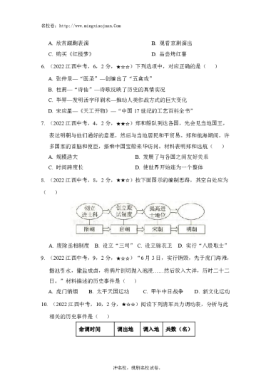 转载请注明出处: 名校卷 » 江西省2022年初中学业水平考试历史试题卷-原题