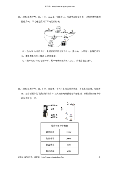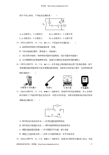 转载请注明出处: 名校卷 » 江西省2020年中等学校招生考试物理