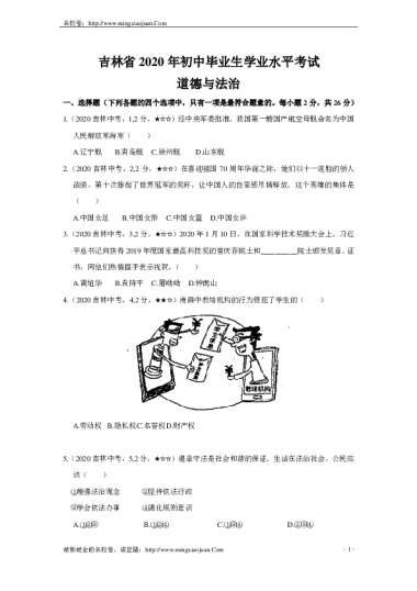 转载请注明出处: 名校卷 » 吉林省2020年初中毕业生学业水平考试道德与法治