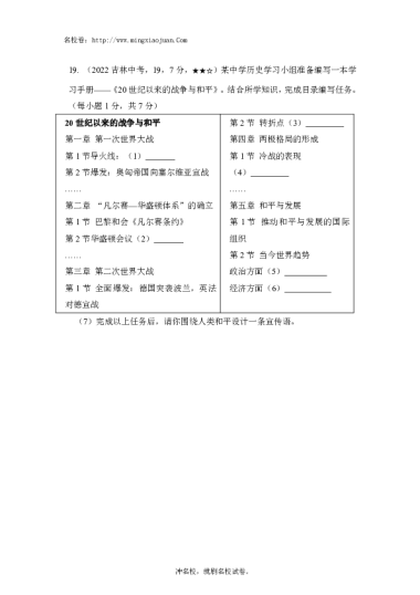 转载请注明出处: 名校卷 » 吉林省2022年初中学业水平考试历史试题-原题