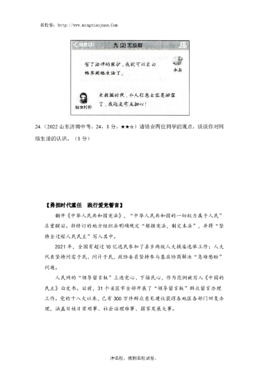转载请注明出处: 名校卷 » 济南市2022年九年级学业水平考试道德与法治试题