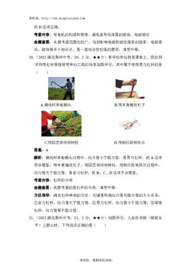 转载请注明出处: 名校卷 » 荆州市2022年初中学业水平考试理化综合试题物理部分-解析