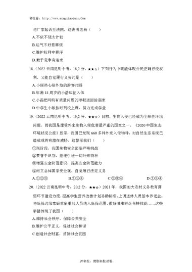 转载请注明出处: 名校卷 » 2022年昆明市初中学业水平考试道德与法治试题卷