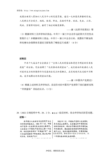 转载请注明出处: 名校卷 » 2022年昆明市初中学业水平考试历史试题卷-原题