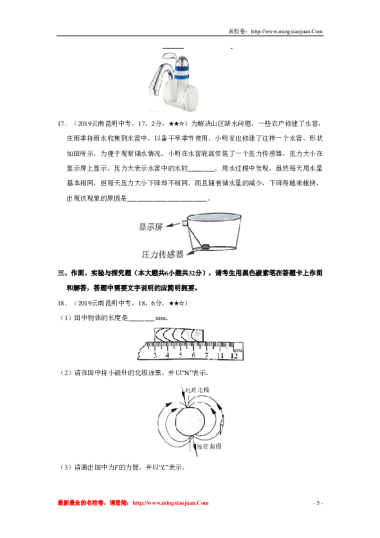 转载请注明出处: 名校卷 » 2019年昆明市初中学业水平考试物理试题卷