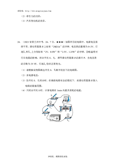 转载请注明出处: 名校卷 » 2023年兰州市初中学业水平考试物理-原题