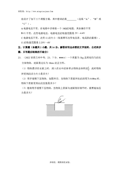 转载请注明出处: 名校卷 » 兰州市2022年初中学业水平物理考试-原题