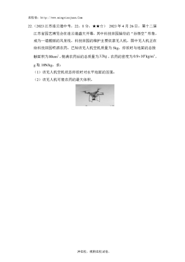 转载请注明出处: 名校卷 » 连云港市2023年初中学业水平物理考试-原题