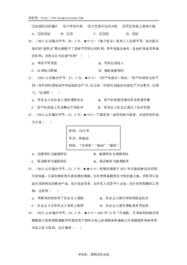 转载请注明出处: 名校卷 » 2021年临沂市初中学业水平考试试题历史