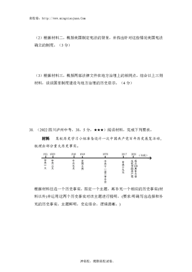 转载请注明出处: 名校卷 » 泸州市二〇二二年初中学业水平考试历史试题-原题
