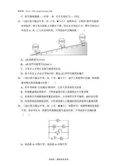 转载请注明出处: 名校卷 » 眉山市2023年初中学业水平暨高中阶段学校招生物理考试-原题