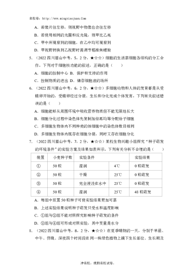 转载请注明出处: 名校卷 » 眉山市2020级初中学业水平暨高中阶段学校招生考试生物试卷-原题