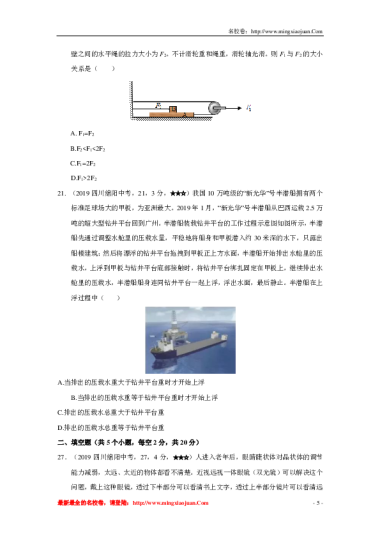 绵阳市2019年学业水平考试暨高中阶段招生考试物理