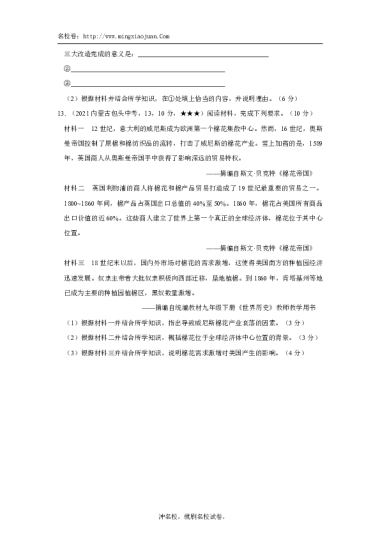 转载请注明出处: 名校卷 » 2021年内蒙古初中学业水平考试试卷文科综合历史
