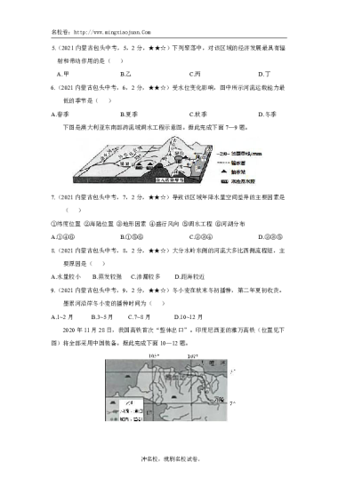 转载请注明出处: 名校卷 » 2021年八年级内蒙古地理、生物结业考试试卷地理