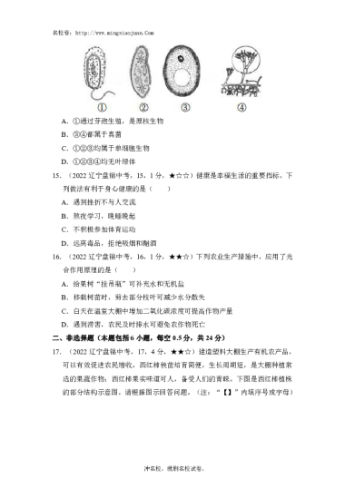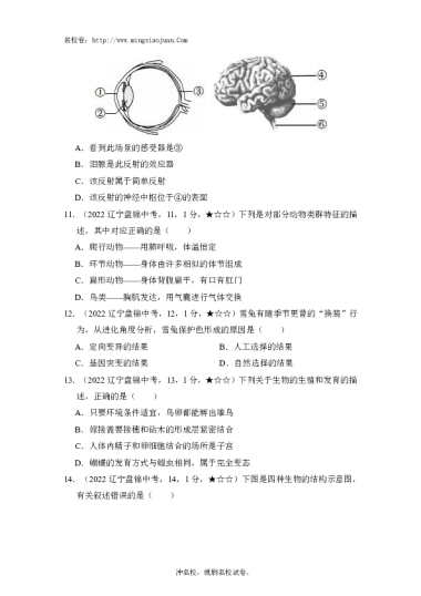 转载请注明出处: 名校卷 » 2022年盘锦市初中学业水平考试生物学试卷-原题