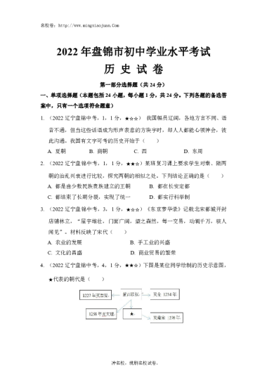 转载请注明出处: 名校卷 » 2022年盘锦市初中学业水平考试历史试卷-原题