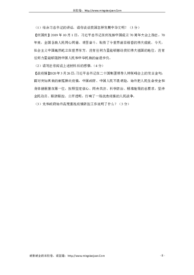转载请注明出处: 名校卷 » 黔东南州2020年初中学业升学统一考试试卷文科综合道德与法治部分