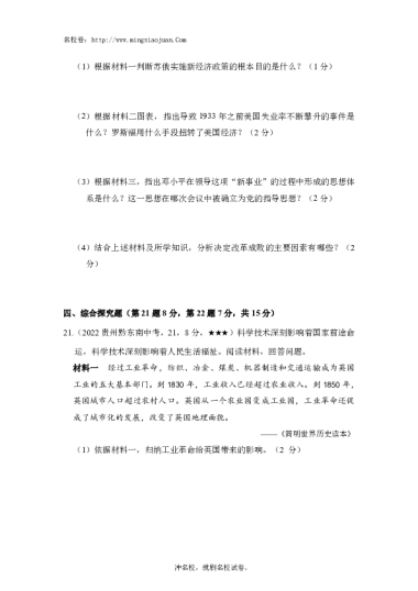 转载请注明出处: 名校卷 » 黔东南州2022年初中毕业升学统一考试试卷历史-原题