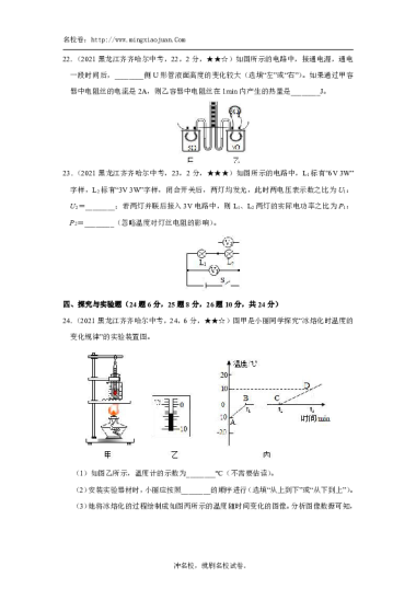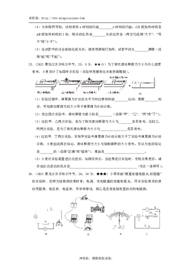 转载请注明出处: 名校卷 » 2021年齐齐哈尔市初中学业考试物理试卷