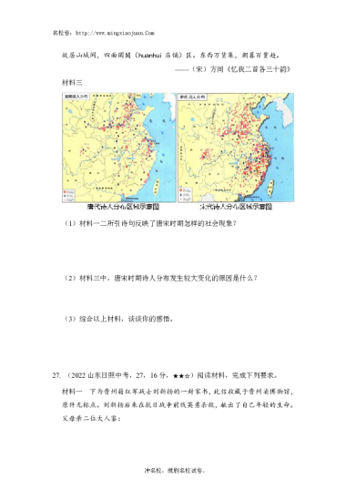 转载请注明出处: 名校卷 » 日照市2022年初中学业水平考试历史试题-原题