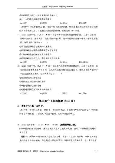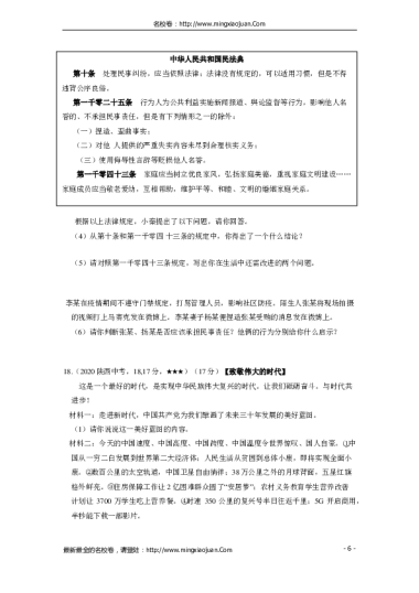 转载请注明出处: 名校卷 » 2020年陕西省初中学业水平考试道德与法治学科A卷