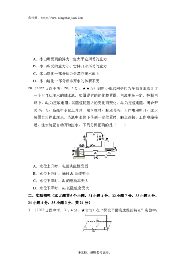 转载请注明出处: 名校卷 » 2022年山西省初中学业水平考试物理-原题