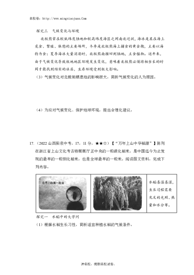 转载请注明出处: 名校卷 » 2022年山西省初中学业水平考试地理-原题