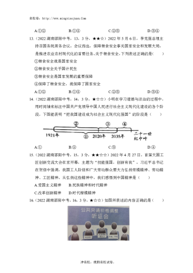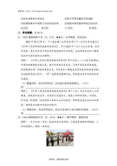 转载请注明出处: 名校卷 » 2022年邵阳市初中学业水平考试试题卷道德与法治