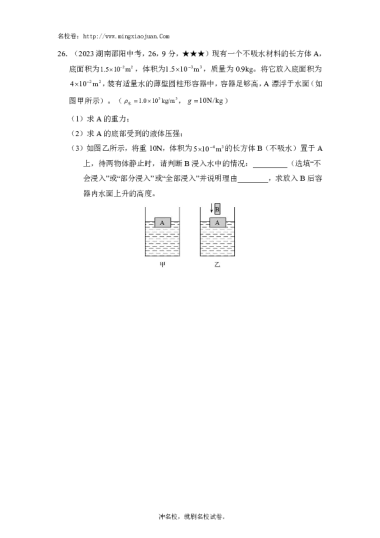 转载请注明出处: 名校卷 » 2023年邵阳市初中学业水平考试试题卷物理-原题