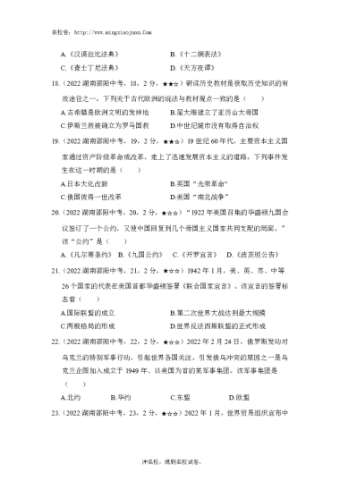 转载请注明出处: 名校卷 » 2022年邵阳市初中学业水平考试试题卷历史-原题
