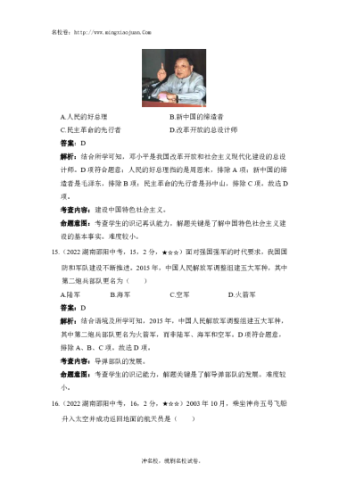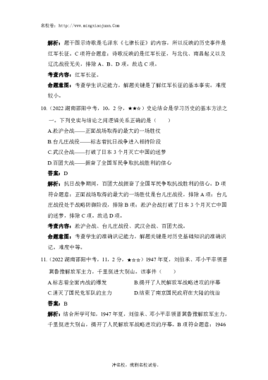 转载请注明出处: 名校卷 » 2022年邵阳市初中学业水平考试试题卷历史-解析