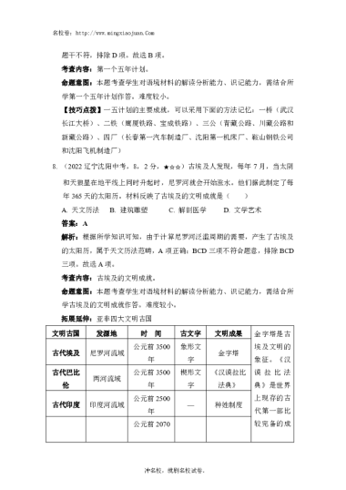 转载请注明出处: 名校卷 » 沈阳市2022年初中学业水平考试历史试题-解析
