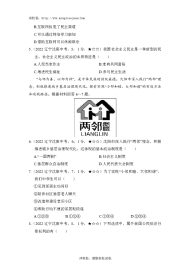 转载请注明出处: 名校卷 » 沈阳市2022年学业水平考试道德与法治试题