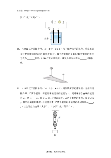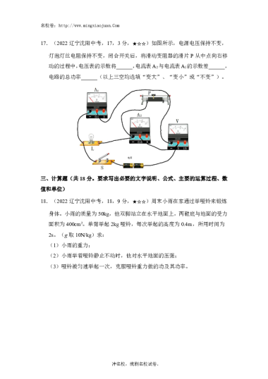 转载请注明出处: 名校卷 » 沈阳市2022年初中学业水平考试物理试题-原题