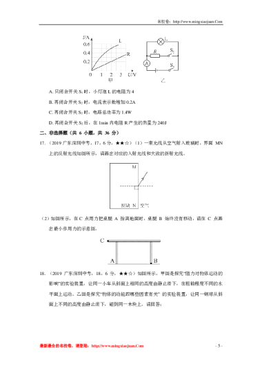 转载请注明出处: 名校卷 » 2019年深圳市初中毕业生学业考试物理试卷