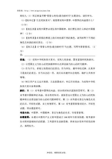 转载请注明出处: 名校卷 » 2022年十堰市初中毕业生学业水平考试道德与法治试题-解析