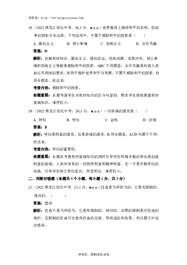 转载请注明出处: 名校卷 » 2022年绥化市初中毕业学业考试道德与法治试题-解析