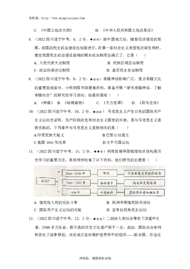 转载请注明出处: 名校卷 » 遂宁市2022年初中毕业暨高中阶段学校招生考试历史部分-原题
