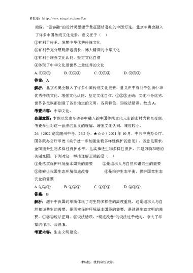 转载请注明出处: 名校卷 » 随州市2022年初中毕业升学考试道德与法治试题-解析