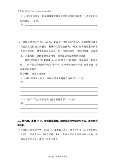 转载请注明出处: 名校卷 » 宿迁市2022年学业水平考试道德与法治