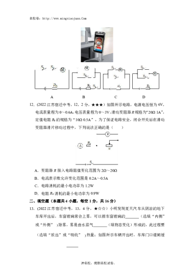 转载请注明出处: 名校卷 » 宿迁市2022年初中学业水平考试物理-原题