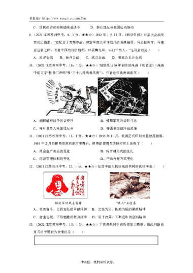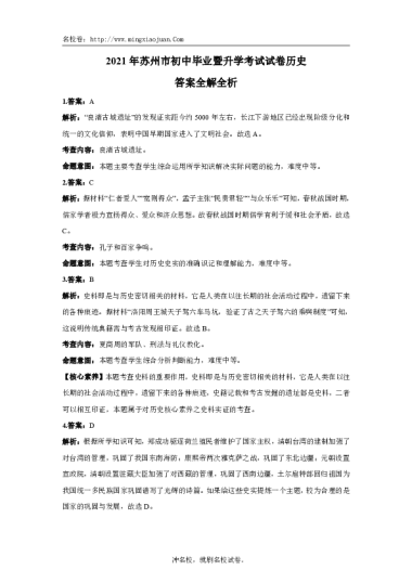 转载请注明出处: 名校卷 » 2021年苏州市初中毕业暨升学考试试卷历史