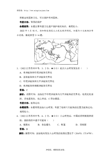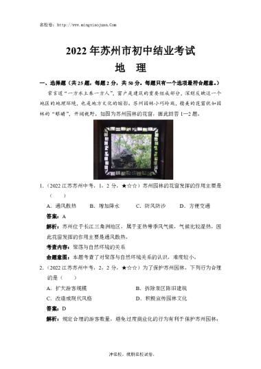 转载请注明出处: 名校卷 » 2022年苏州市初中结业考试地理-解析