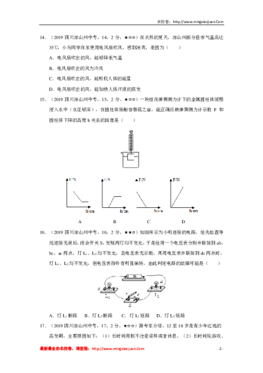 2019年凉山州高中阶段教育学校招生统一考试物理